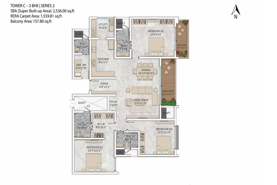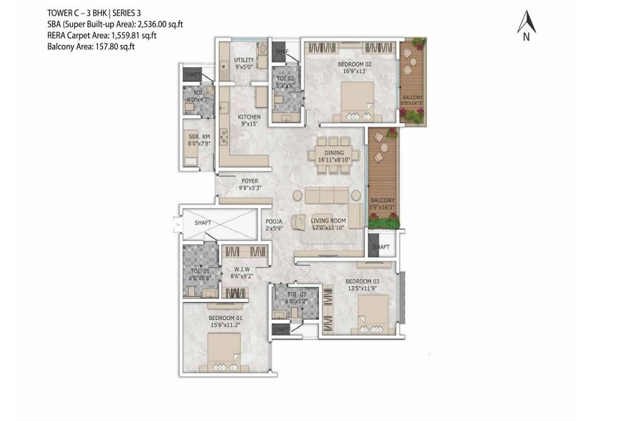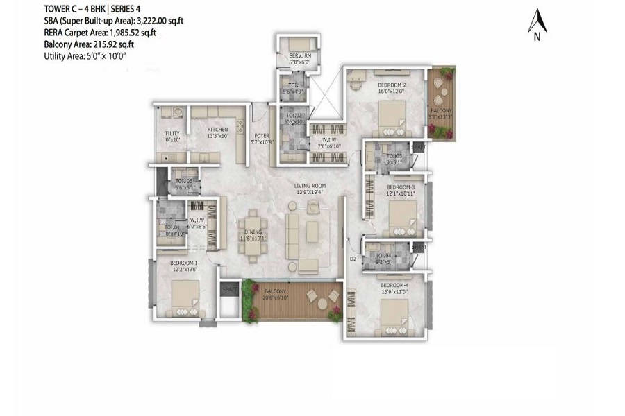 | Configuration | 3 BHK+2 | 3 BHK+3 | 4 BHK | 5 BHK |